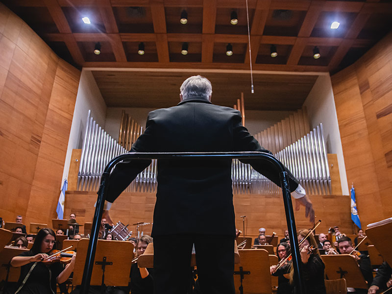 El 6 de febrero de 1974 se creó la Orquesta Sinfónica de la Universidad Nacional de San Juan, coincidiendo con los objetivos que en materia musical debía fijarse la institución universitaria, abierta al pueblo en todo cuanto se refiera a alcanzar su plenitud estética. El primer Director Estable, por concurso, fue el Maestro Jorge Fontenla. Entre otros objetivos, la resolución de fundación de la Orquesta establece que este organismo nutrirá en forma ininterrumpida a los distintos conjuntos de cámara que posibilitarán una labor didáctica en establecimientos educativos, sindicatos, centros culturales, etc., con especial énfasis en zonas marginales de la provincia II.